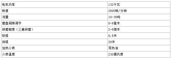 高速剪切均化磨技術參數(20T/小時)